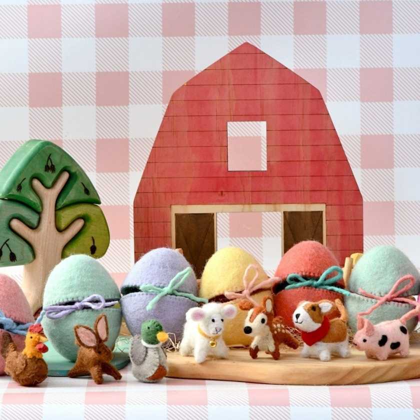 Perfect for Easter baskets, egg hunts, or as a special treat for your loved ones, our Felt Surprise Egg with Spotted Pig inside adds an element of surprise and whimsy to your holiday celebrations.