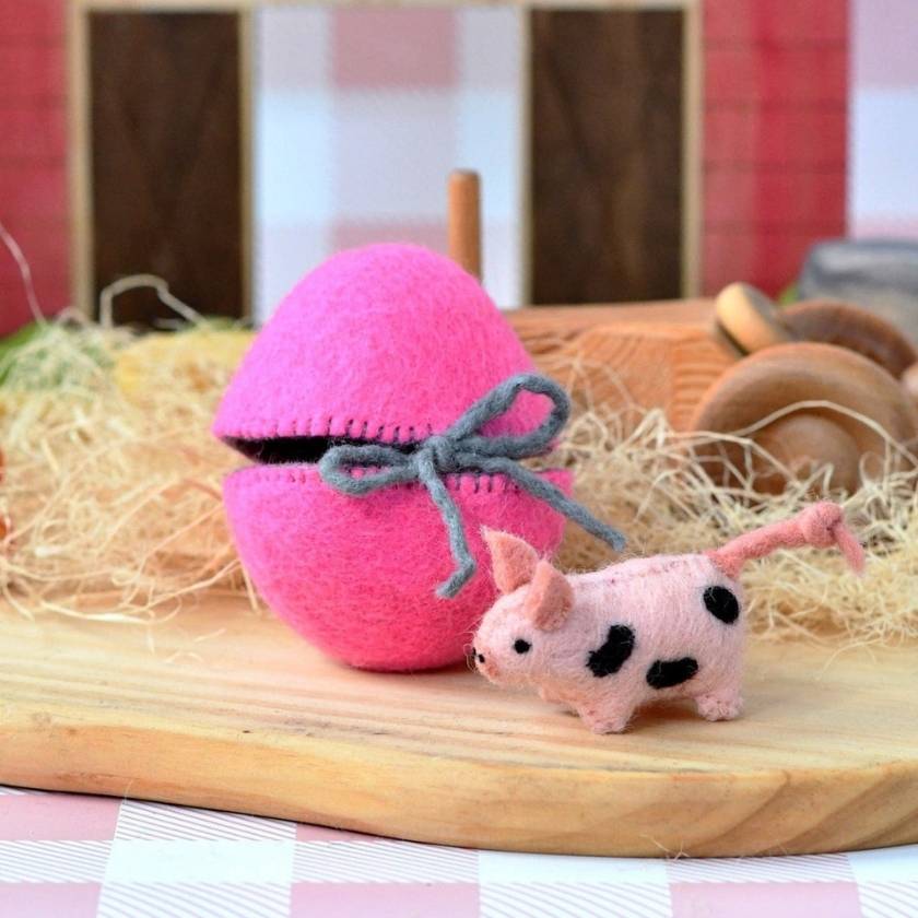 Felt Surprise Egg with Spotted Piglet Inside
