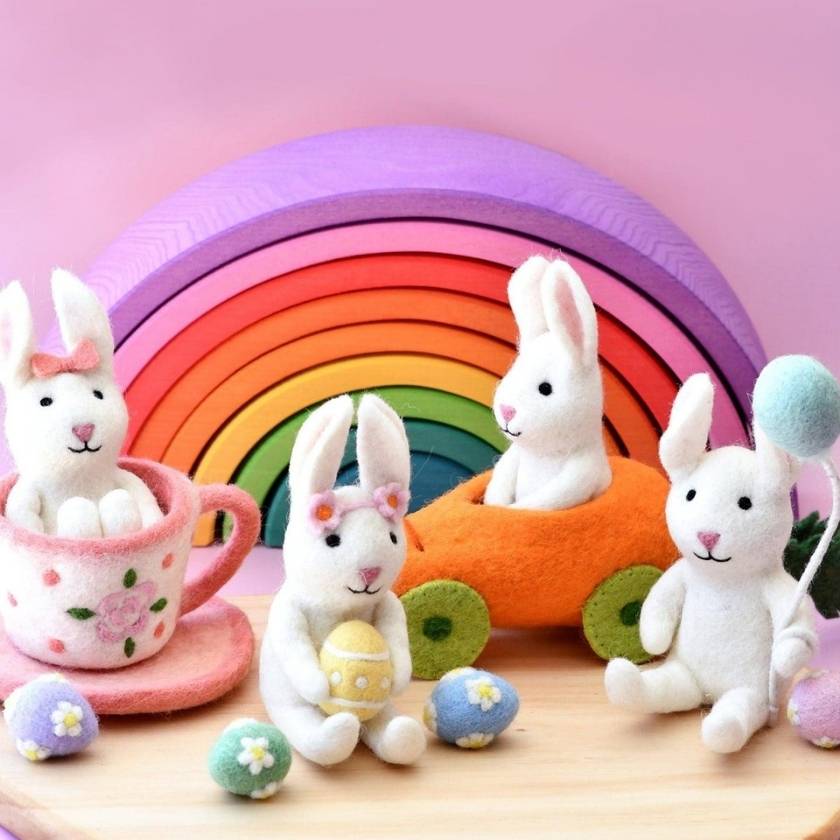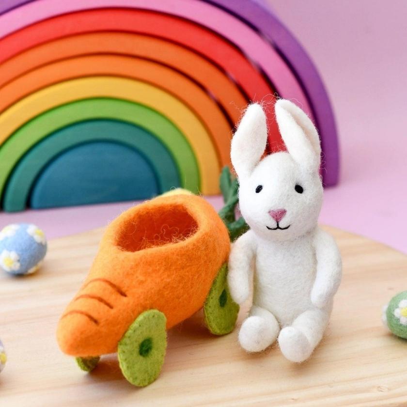The Felt Rabbit toy is removable from its Carrot Car, making it a perfect toy for your most imaginative moments. Check out the rest of our Easter Theme products.