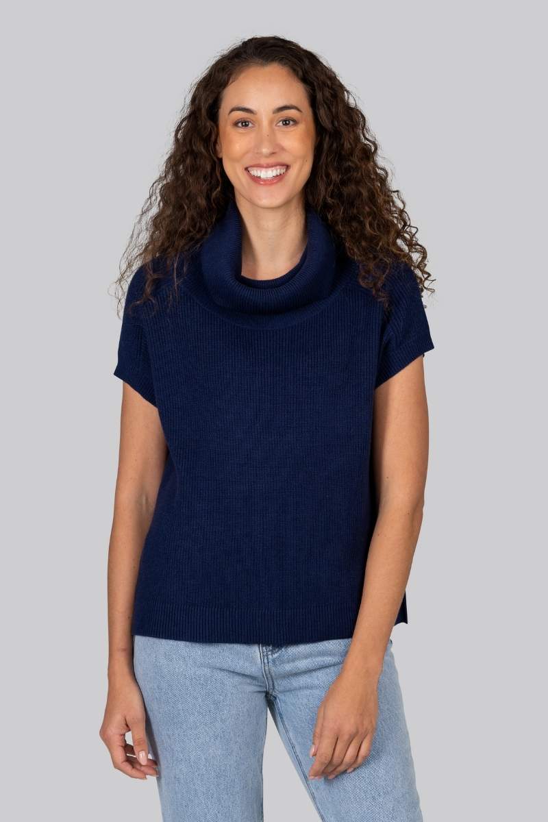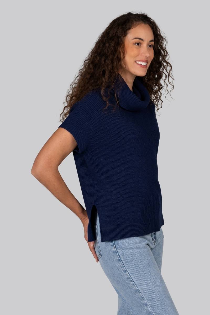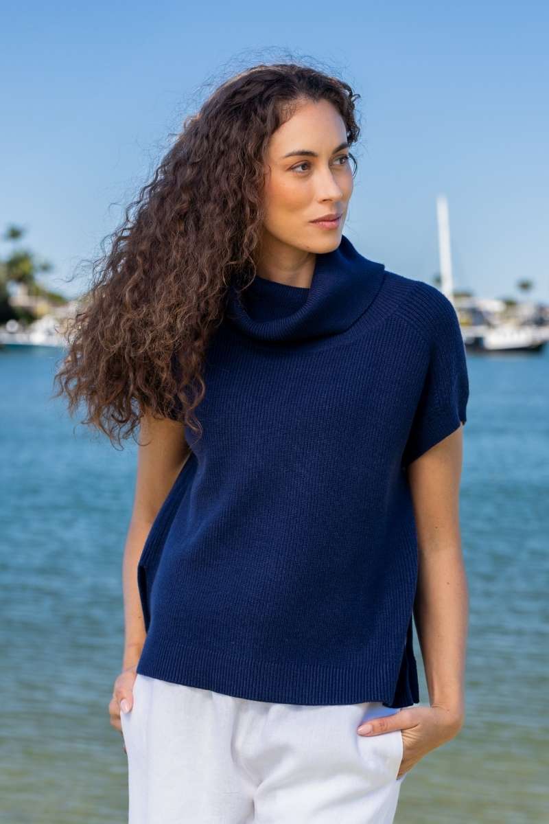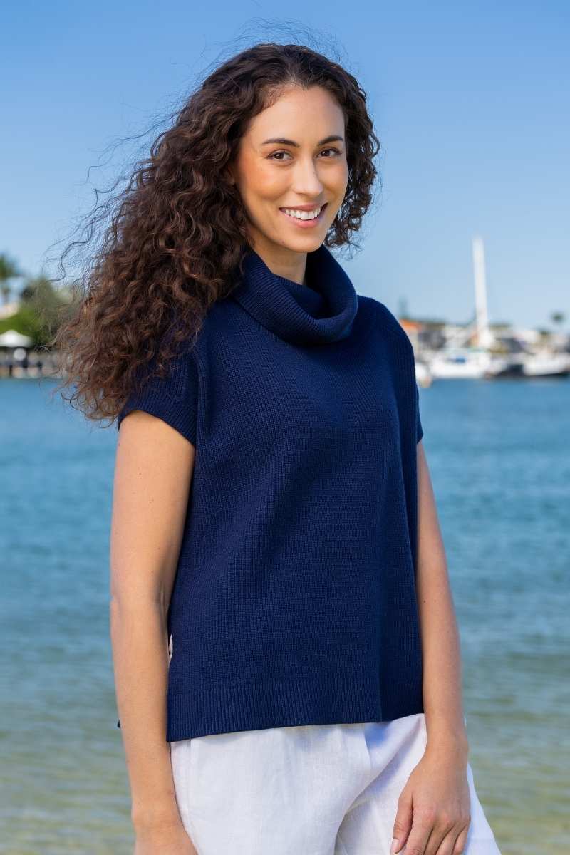 Kaleido Viscose Blend Roll Neck Vest Navy