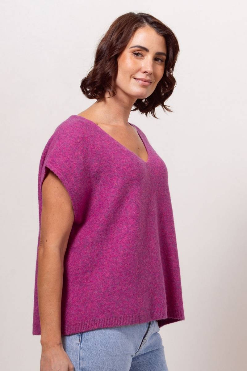 See Saw Llama, Wool Blend V Neck Boxy Vest in Magenta
