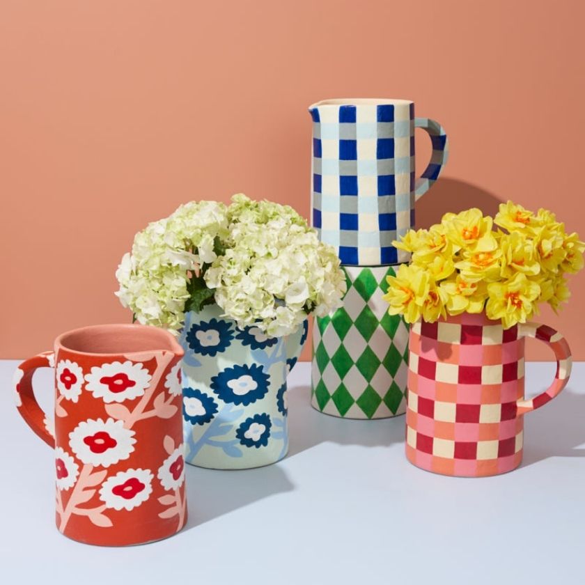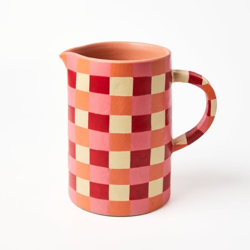 Add a pop of colour and charm to your home with the Maker Jug Rosy Check from Jones & Co. Hand-painted in a bold red and butter-yellow check pattern, this terracotta jug brings a warm, playful feel to any space.