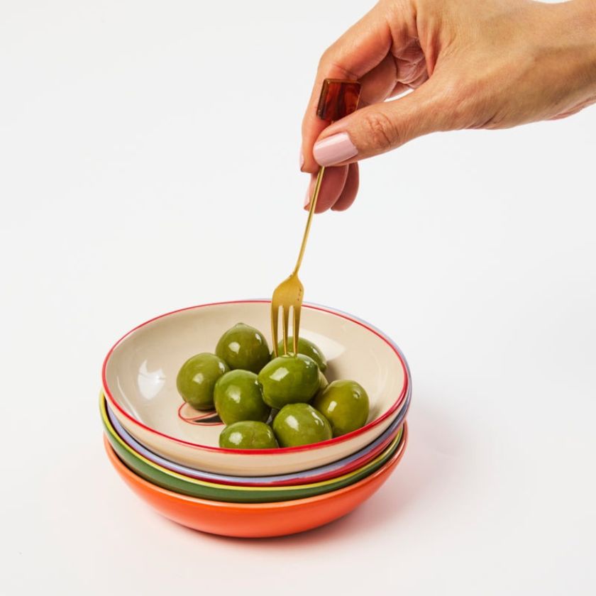 Zesty and fresh with a twist of orange. This Aperol spritz cocktail bowl is hand-painted with a bright citrus rim and a stylised spritz illustration in the centre. Stack them high and serve with joy.