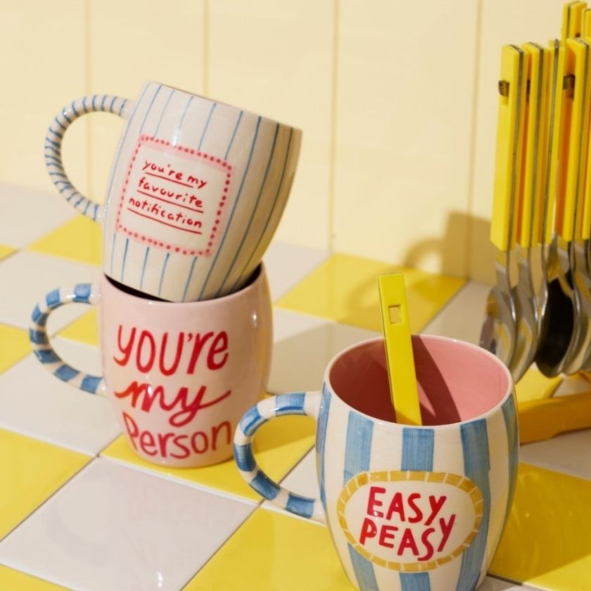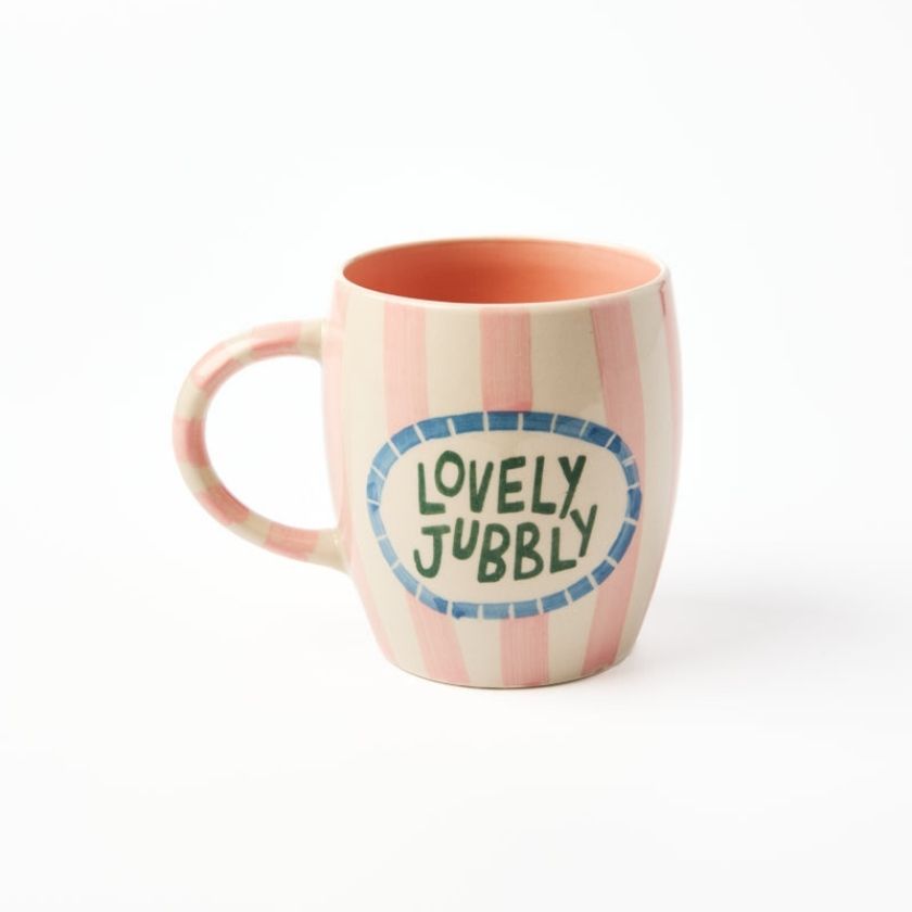 The Love Notes Mug Lovely Jubbly brings playful charm to your morning ritual. Hand-painted with soft pink stripes and a bold slogan, this artisan ceramic mug is equal parts practical and fun. Perfect as a gift for coffee lovers or as your go-to everyday mug, it's a reminder that life with coffee is lovely jubbly.