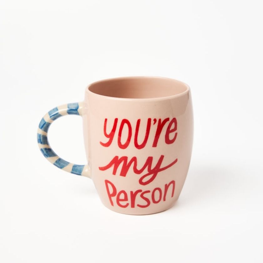 Say it with coffee: the Love Notes Mug My Person is the perfect mug for someone special. Hand-painted in red with the words "You're my person", it's a heartfelt daily reminder wrapped up in artisan charm. Crafted from durable earthenware, this handmade mug is made to last a lifetime of brews.